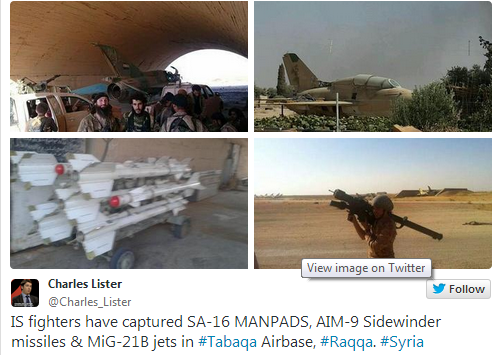 Ngày 25/8, những phiến quân thuộc nhóm ISIS đã chiếm được căn cứ không quân Tabqa, tiền đồn quân sự cuối cùng của Syria trong khu vực mà giờ đây đang bị kiểm soát bởi lực lượng khủng bố Hồi giáo cực đoan trên.