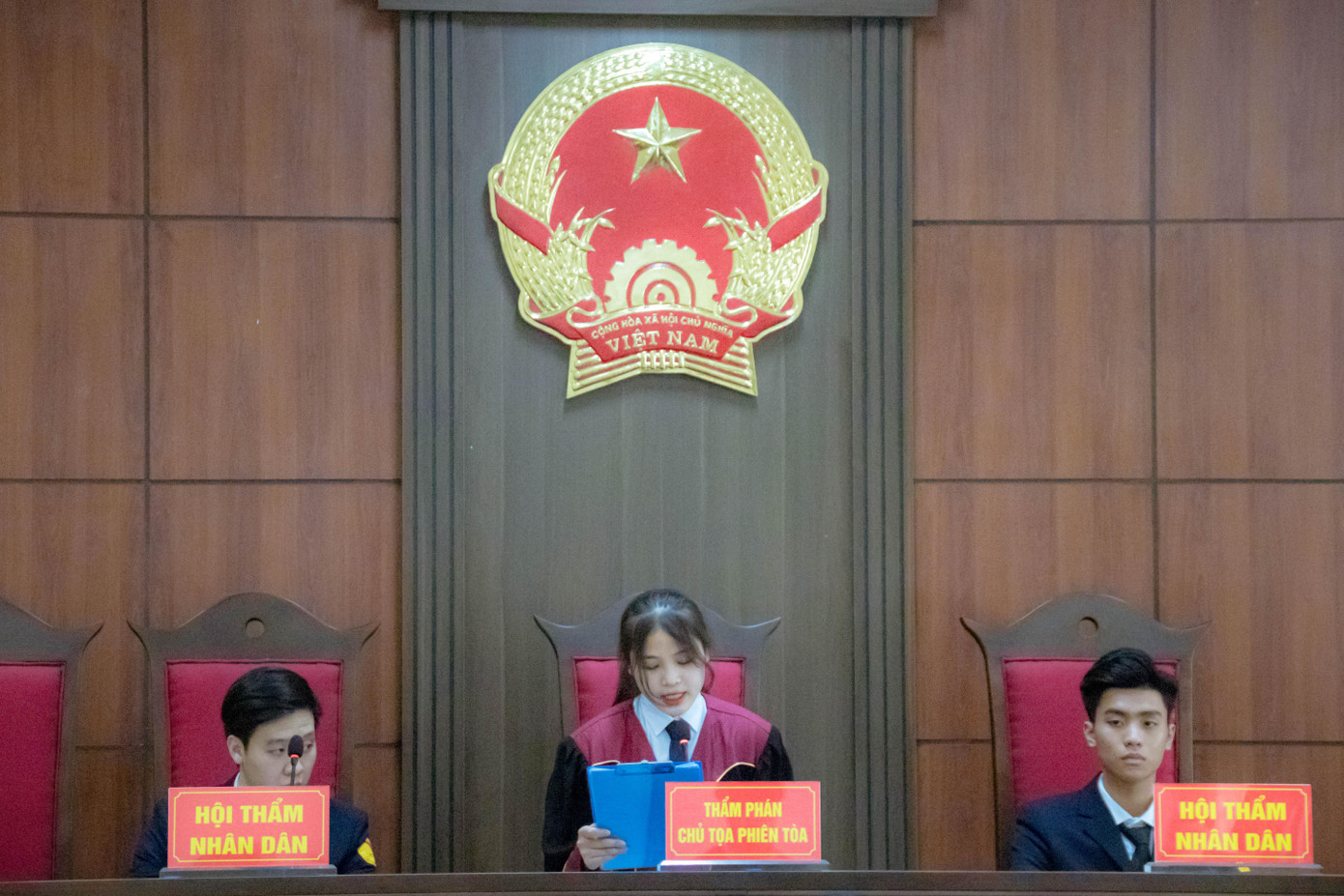 Chung kết cuộc thi Phiên tòa hình sự năm 2022 được tổ chức ngày 24/4, tại phòng diễn án mới được đưa vào sử dụng chính thức tại trường Đại học Luật Hà Nội. Điều này giúp các thí sinh có cơ hội được trải nghiệm gần hơn với thực tế.