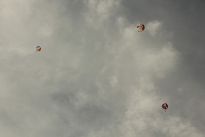 Những cánh dù bay trên một khoảng không gian rộng. Tùy theo mức độ gió, kinh nghiệm điều khiển dù của học viên mà dù bay chụm tại bãi đáp hay tản mát khắp nơi. Nhìn chung, với học viên, nhất là học viên mới, chủ yếu trải nghiệm cảm giác bay nên “cứ để gió cuốn đi”.