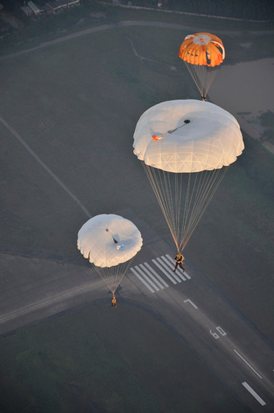 Từ cửa máy bay mở rộng, học viên lao ra khoảng không bao la.