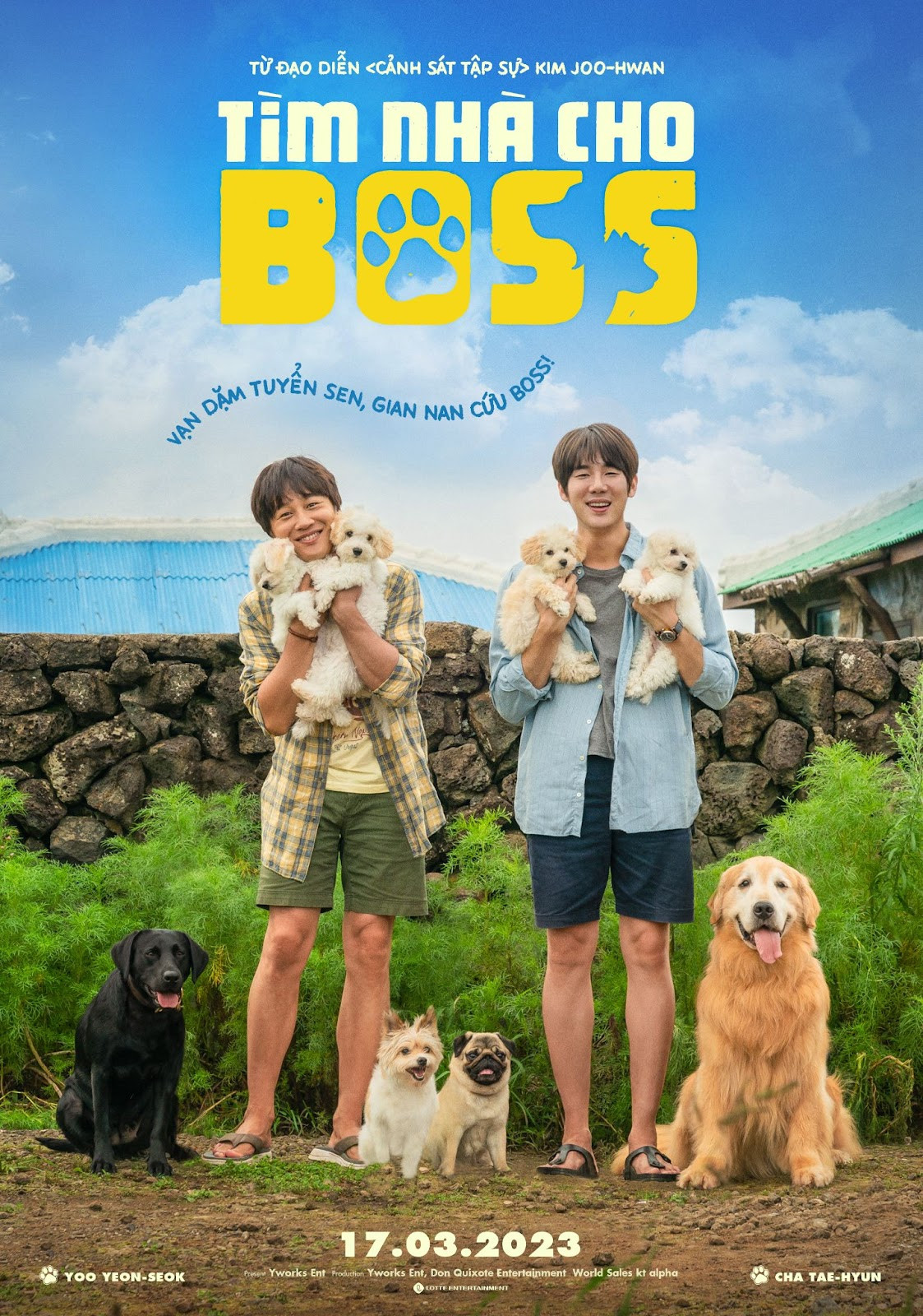 Khi theo dõi Tìm Nhà Cho “Boss”, khán giả sẽ được “nhập hội” cùng hai anh em Jin Guk, Min Su và “biệt đội” cún cưng siêu đáng yêu trên chuyến xe đi Jeju. Một trong những nhân vật chính của bộ phim là Runie - chú chó thuộc giống Golden Retriever với bộ lông vàng óng ả, luôn quấn quýt bên Min Su.