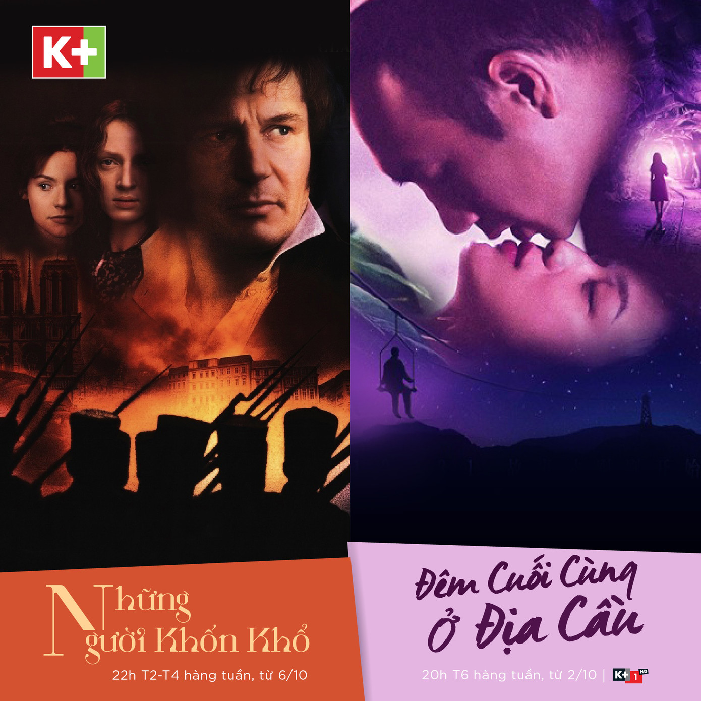 Mời bạn đón xem Những người khốn khổ vào 22h từ thứ 2 đến thứ 4 hàng tuần, bắt đầu từ ngày 6/10 và Đêm cuối cùng ở địa cầu vào 20h thứ 6 hàng tuần, bắt đầu từ ngày 2/10 trên kênh K+1.