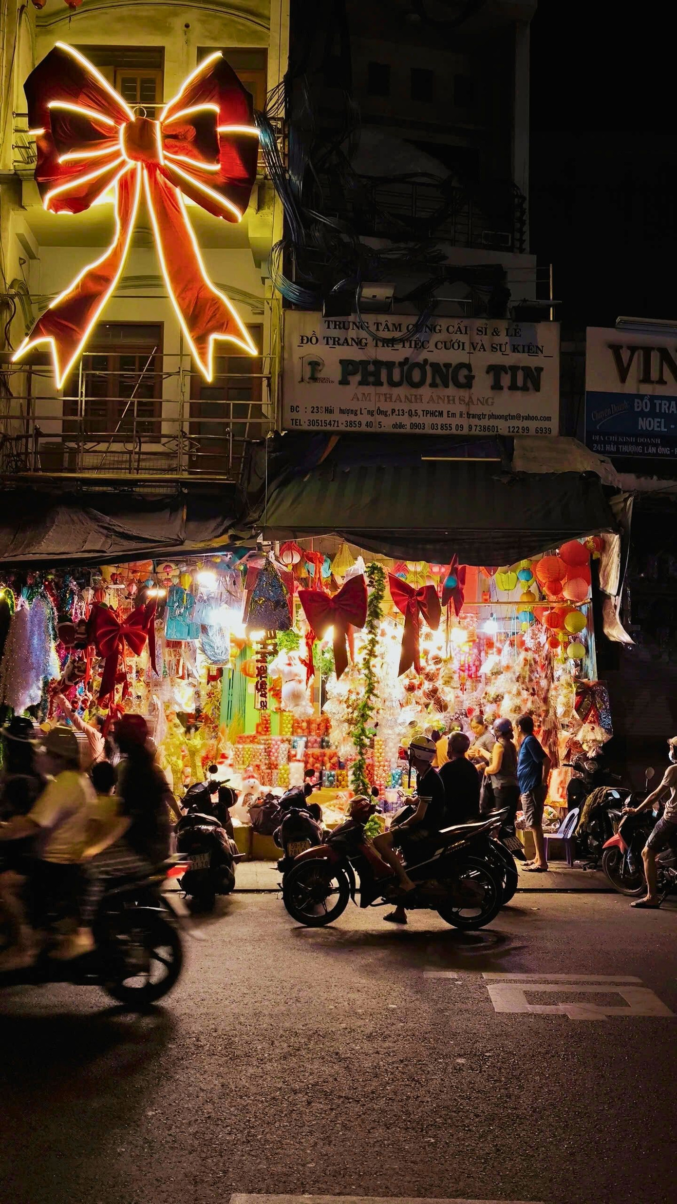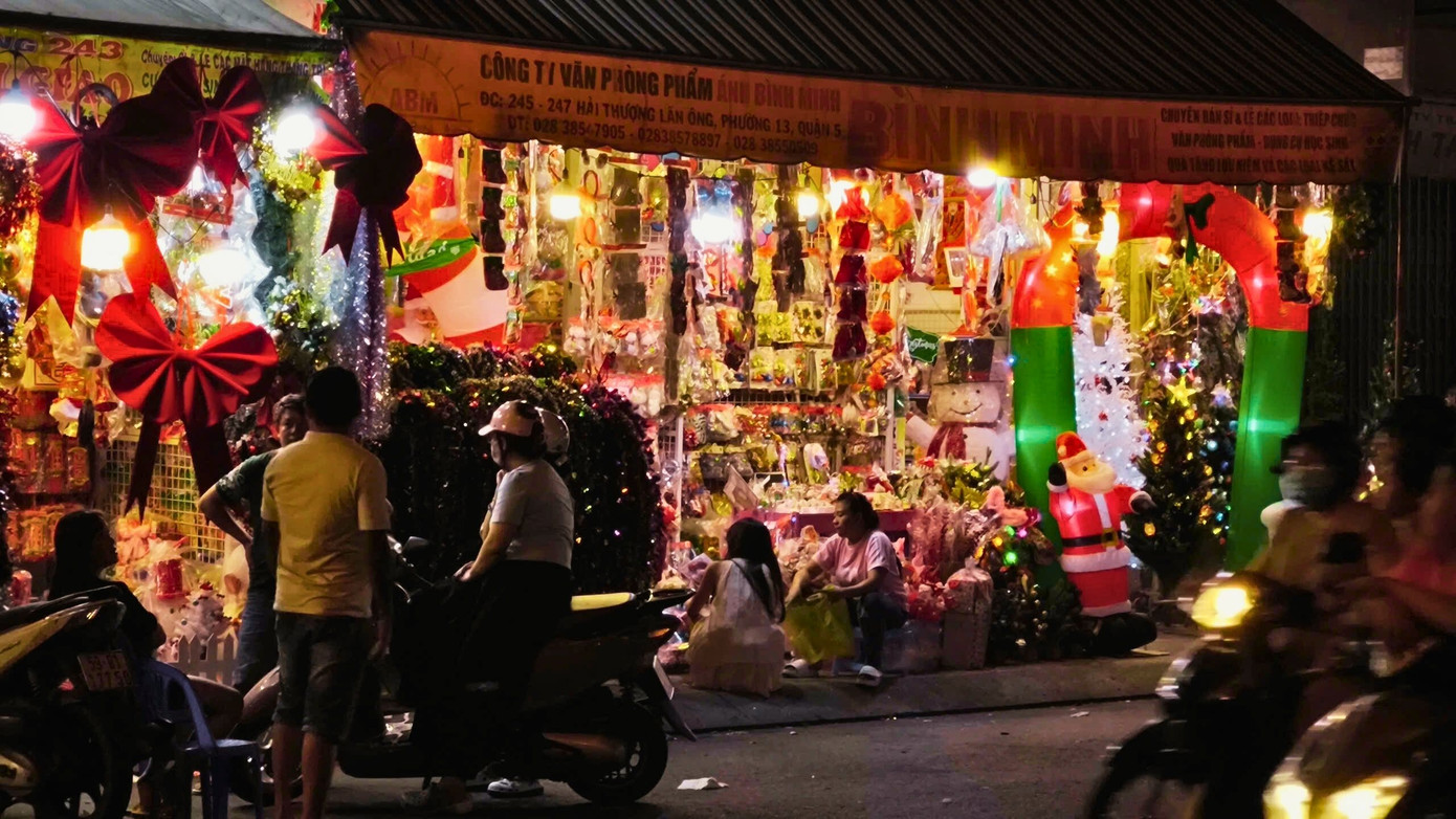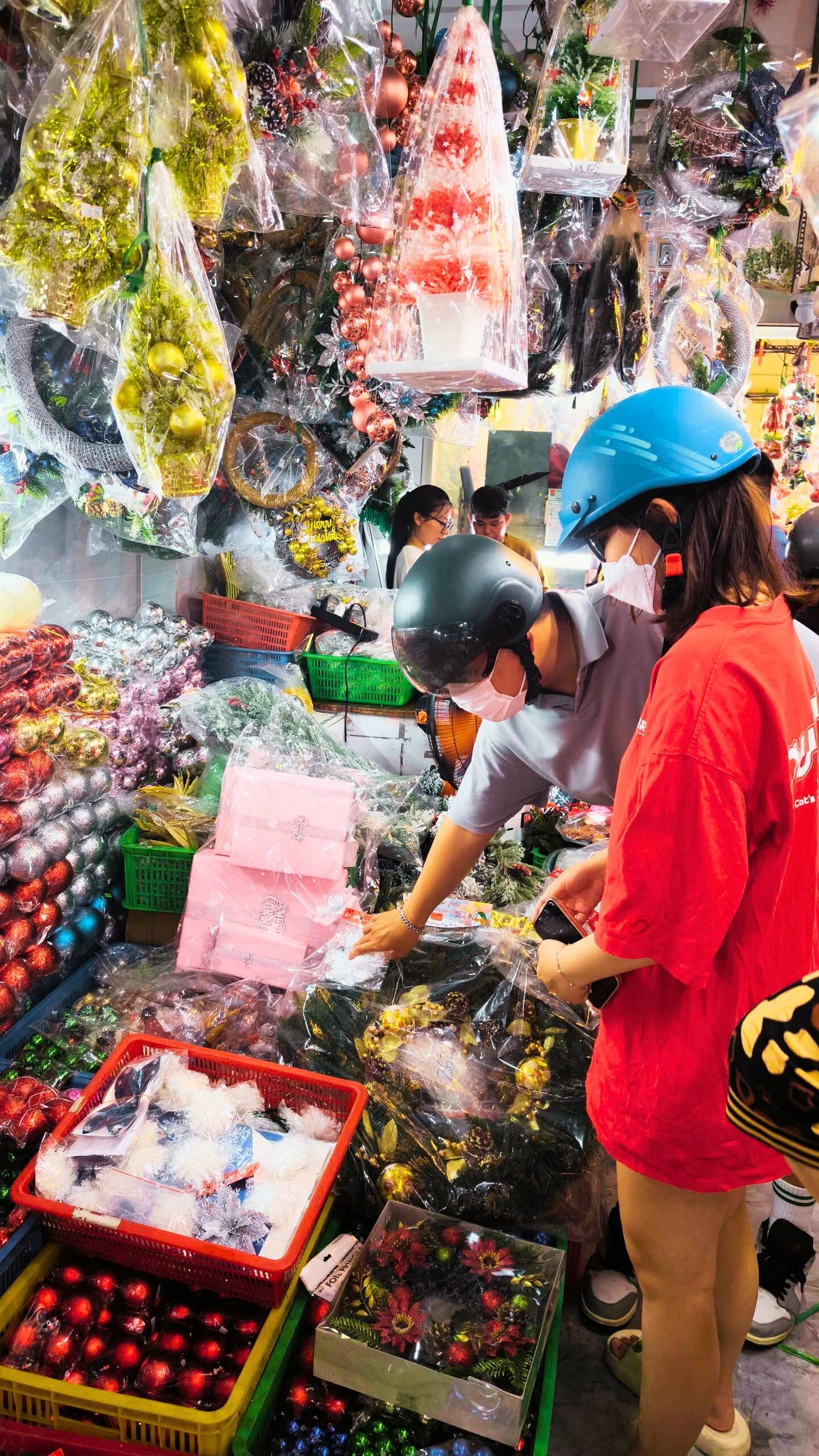 Những ngày đầu tháng Mười Hai này, khu phố chuyên bán đồ trang trí lớn nhất TP. HCM lại rộn ràng, rực rỡ ánh đèn với các mặt hàng cho mùa Giáng sinh. Đây cũng là thời điểm khu phố này thu hút nhiều bạn trẻ đến mua sắm cũng như dạo phố, check-in.