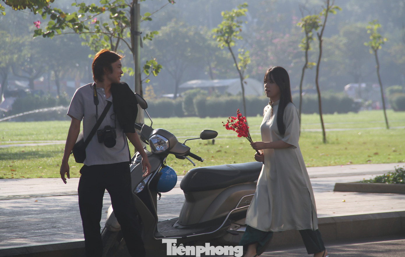| Đôi bạn trẻ diện áo dài xuống phố săn ảnh đẹp. Ảnh: Trương Định |