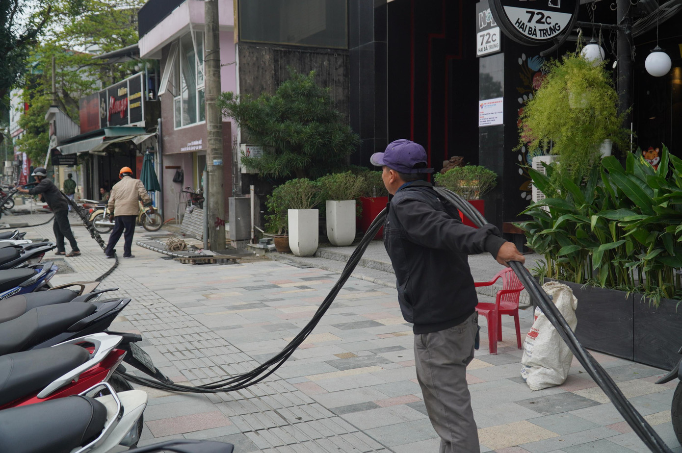| Các hạ tầng liên quan đến hệ thống điện trên phố đi bộ vẫn chưa hoàn thành. |