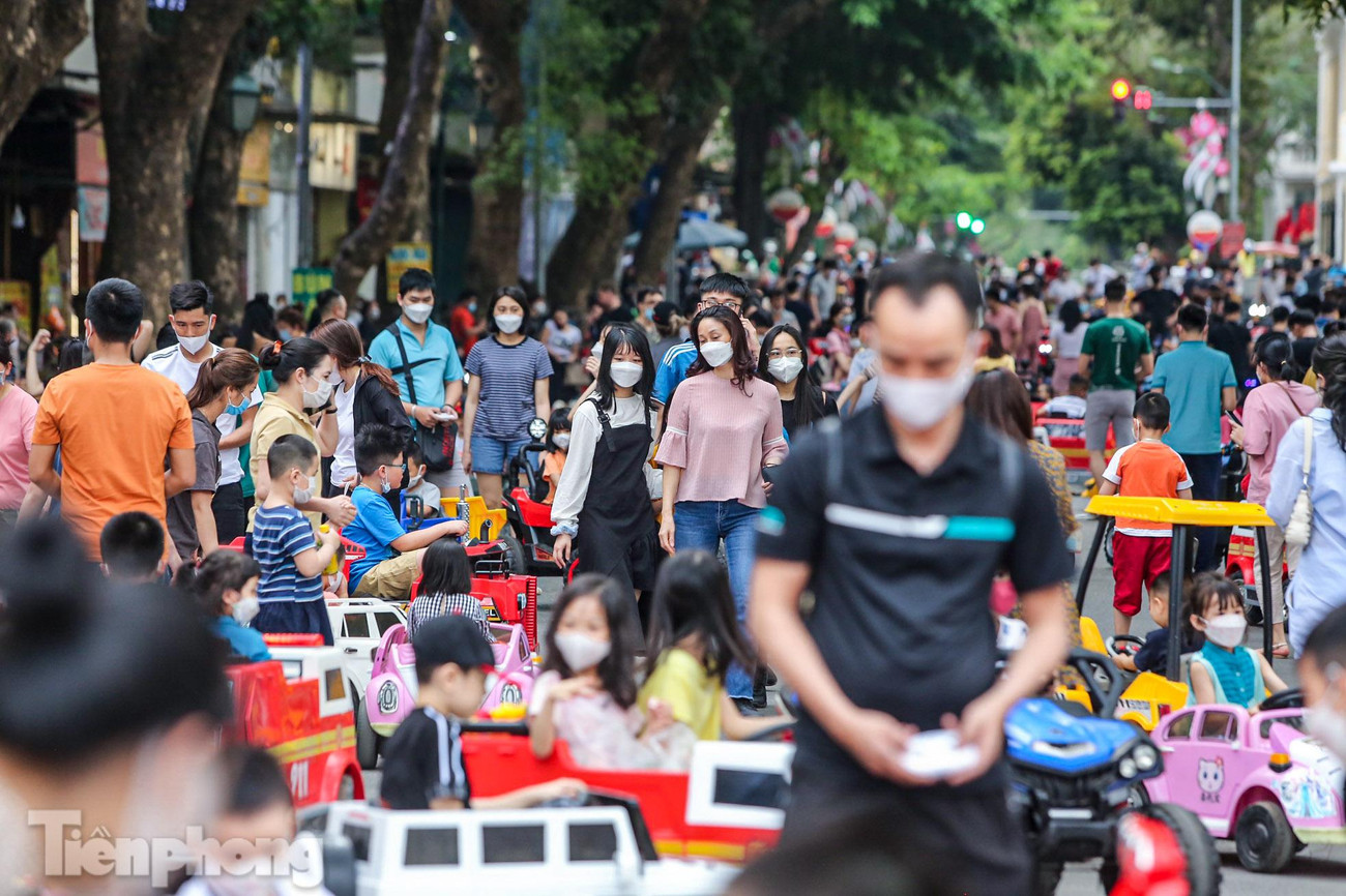 | Rất đông trẻ em được gia đình đưa lên phố đi bộ trong dịp nghỉ lễ này. |