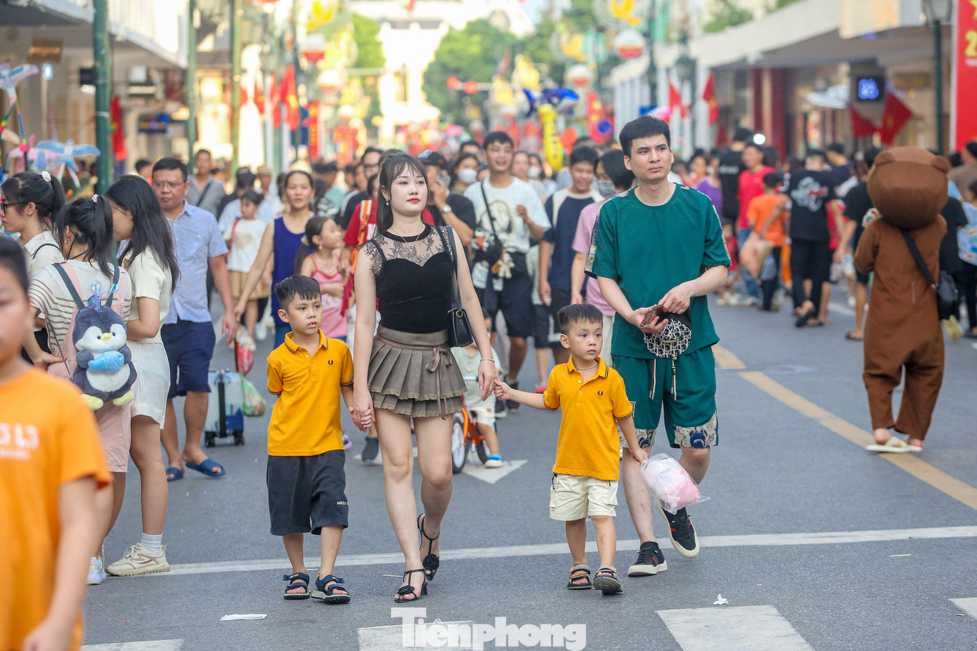 | Trẻ em thích thú khi được phụ huynh, gia đình đưa lên phố đi bộ ngày lễ. |