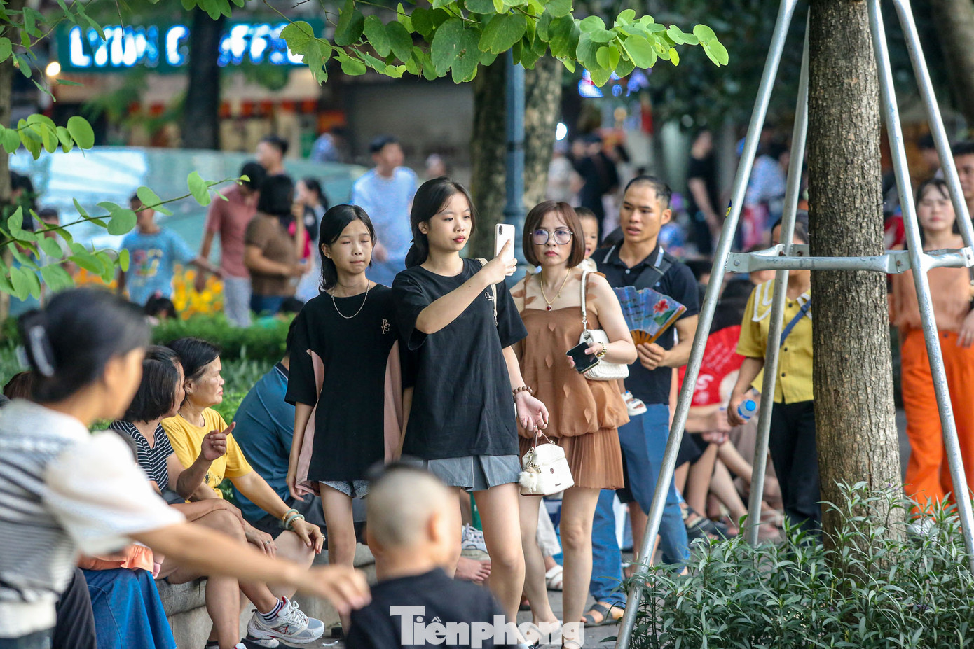 | Nhiều bạn trẻ tranh thủ lưu giữ khoảnh khắc trong khí trời mát mẻ. |