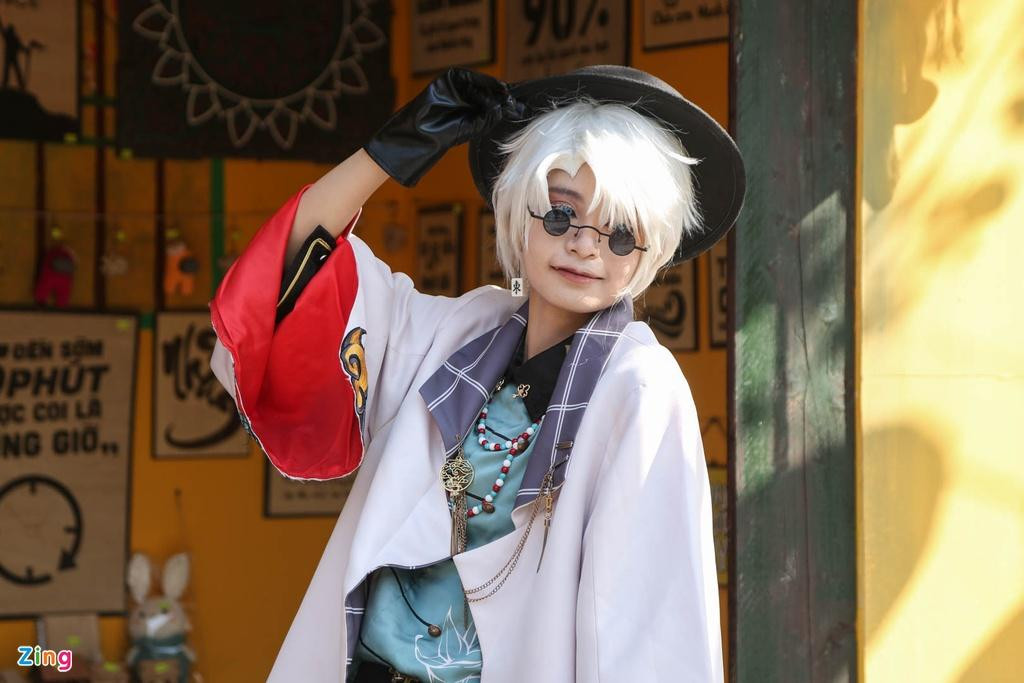Hóa trang thành nhân vật Gojo trong bộ phim hoạt hình ‘Chú thuật hồi chiến’, Giai Thụy (Hà Đông, Hà Nội) đã dành hơn 3 tiếng để chuẩn bị, đến sự kiện và giao lưu cùng mọi người. “Mình được kết bạn và chụp ảnh giao lưu với rất nhiều người khi đến đây. Không gian khá rộng rãi, thoải mái giúp những bức hình sau khi chụp đẹp và sinh động hơn”, cô cho biết.