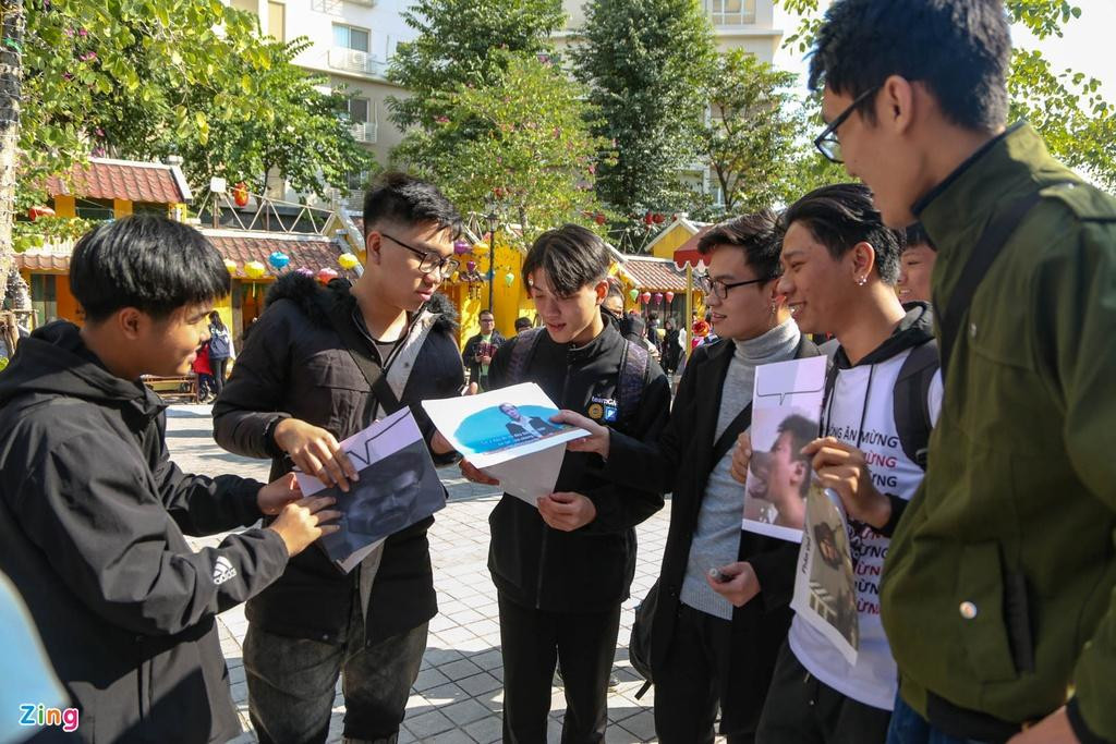 Di chuyển từ quận Nam Từ Liêm, Nguyễn Huy (người ở giữa) cùng nhóm bạn rất hào hứng khi có cơ hội được vui chơi, giao lưu, kết nối cùng mọi người. “Bọn mình mang đến đây những bức tranh với nội dung hài hước và đã nhận được sự quan tâm từ nhiều bạn cùng chung sở thích”, Huy chia sẻ.