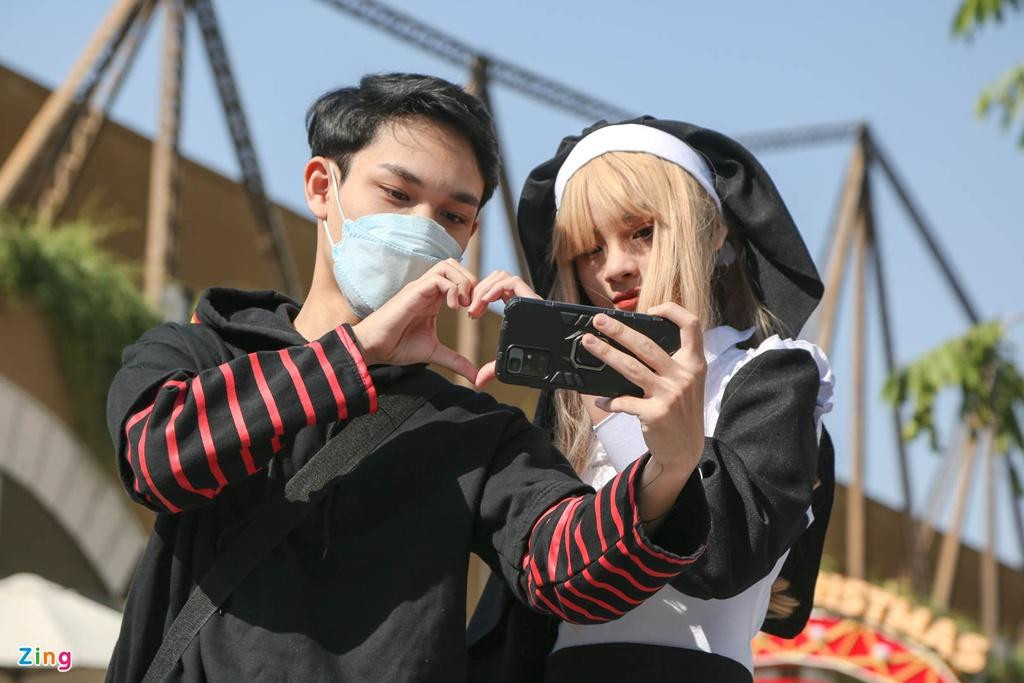 Không gian lễ hội sôi động, náo nhiệt giúp các bạn trẻ dễ dàng gắn kết với nhau. Trước nhiều tạo hình nhân vật bắt mắt, khách tham quan có thể xin chụp ảnh cùng và lưu giữ những bức hình kỷ niệm.