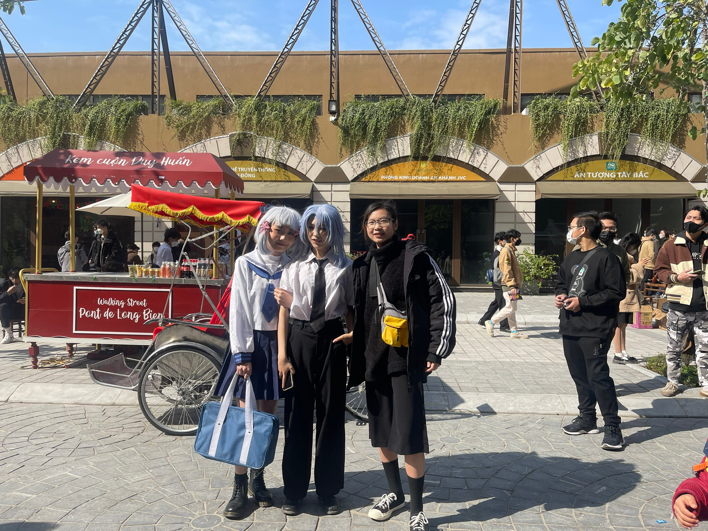 Với mục đích giao lưu, kết bạn và trở nên nổi bật tại sự kiện, Huyền Trang (người thứ 2, bên trái) cùng các bạn tại Đại học Luật Hà Nội đã cùng nhau hóa trang thành những nhân vật trong bộ phim “Spy x Family”. Đến Pont de Long Bien, Trang cho biết cô khá bất ngờ với vẻ đẹp mang phong cách cổ kính của phố đi bộ: “Lần đầu tiên được đến đây để tham gia sự kiện, chúng mình rất ngạc nhiên vì phố đi bộ mang những nét rất ‘thơ’ về Hà Nội”.