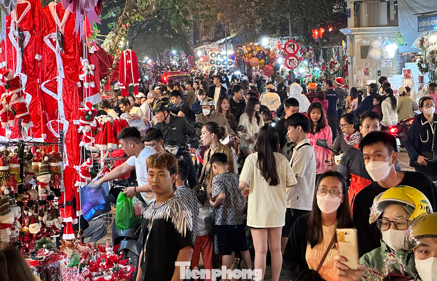 | Gần đến ngày lễ Noel, nhiều bạn trẻ khắp nơi đã đổ về phố Hàng Mã mua sắm và chụp ảnh check-in. |
