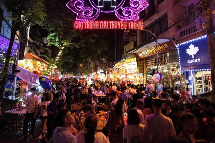 Nhiều bạn trẻ, gia đình và các cặp đôi đến đây vui chơi, gặp gỡ và chụp hình lưu niệm, không khí đêm rằm ở đây trở nên náo nhiệt hơn bao giờ hết.