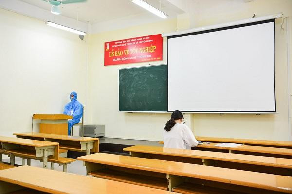Với phòng thi có thí sinh mắc COVID-19, Nhà trường chuẩn bị đầy đủ các điều kiện cần thiết bảo đảm cho cán bộ coi thi, cán bộ giám sát phòng thi riêng, nghiêm túc thực hiện phòng, chống dịch COVID-19.