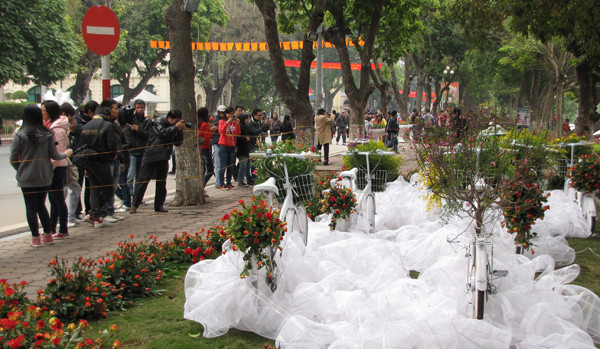 | Nhiều người đổ về Hồ Gươm xem hội hoa. |