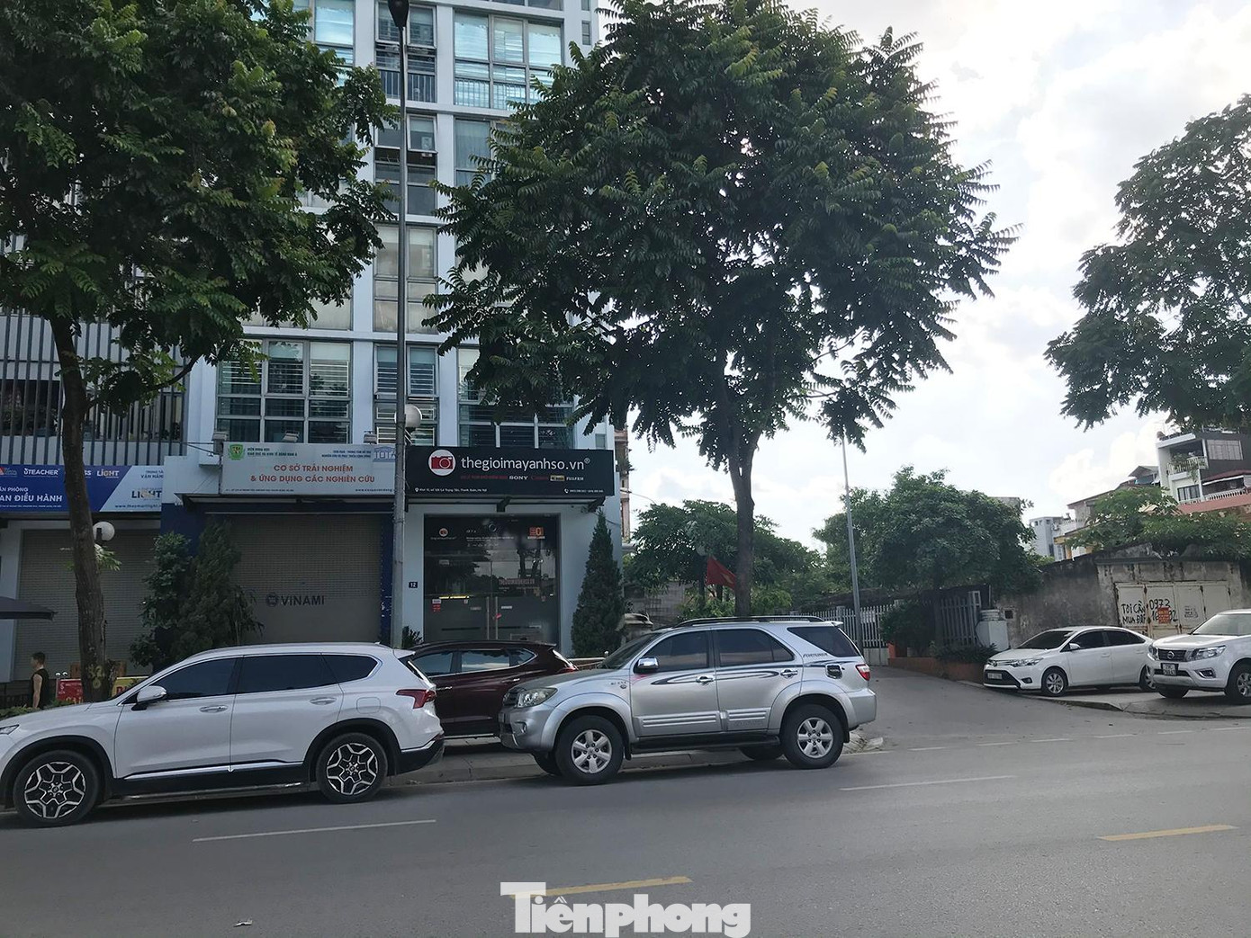 | Hàng dài ô tô dừng đỗ dưới lòng đường phố Lê Trọng Tấn. Ảnh: Trường Phong |