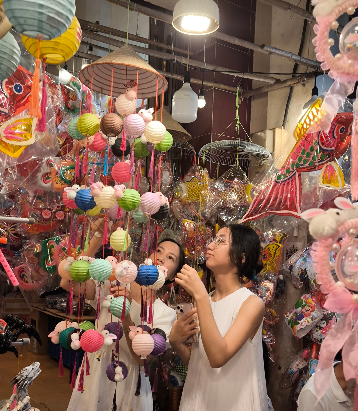 Đến với phố lồng đèn đón Trung Thu 2024, nhiều bạn trẻ cũng ấn tượng với các mẫu lồng đèn giấy được in ấn và sáng tạo tỉ mỉ.