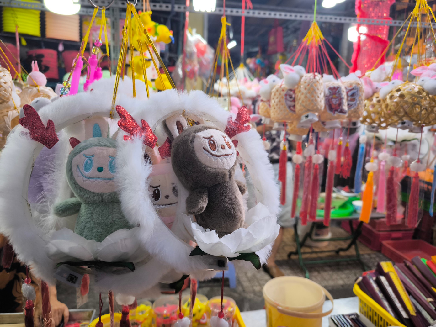 Trong khi đó, sức hút của các 'monsters Labubu' cũng đã tràn đến phố lồng đèn năm nay. Vài mô hình Labubu được thiết kế vào trên mỗi chiếc đèn lồng để tạo điểm nhấn.