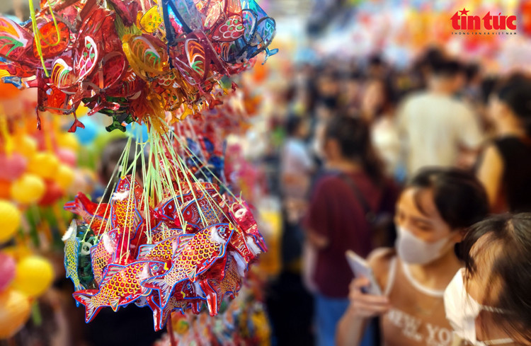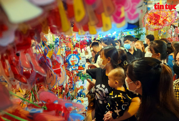 Ghi nhận của phóng viên Báo Tin tức, từ 18 - 22 giờ là khung giờ khu phố bán lồng đèn Trung thu rực rỡ và đông đúc nhất. Đặc biệt vào những ngày cuối tuần, nhiều em nhỏ cũng được bố mẹ đưa đến đây vui chơi.