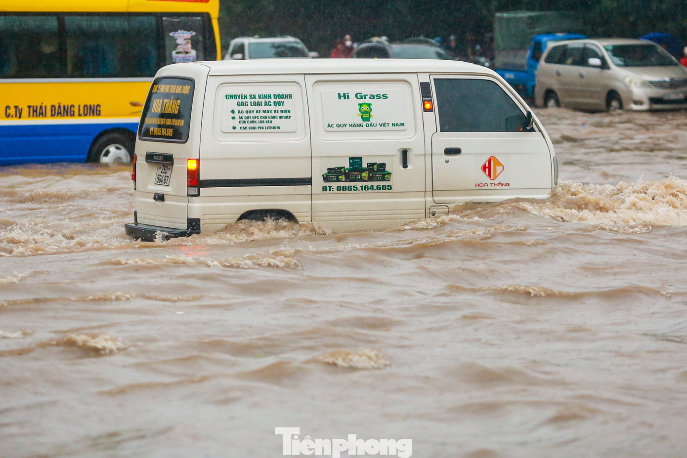 | Nước ngập qua bánh, một phương tiện được người dân hỗ trợ vượt qua điểm ngập sâu. |