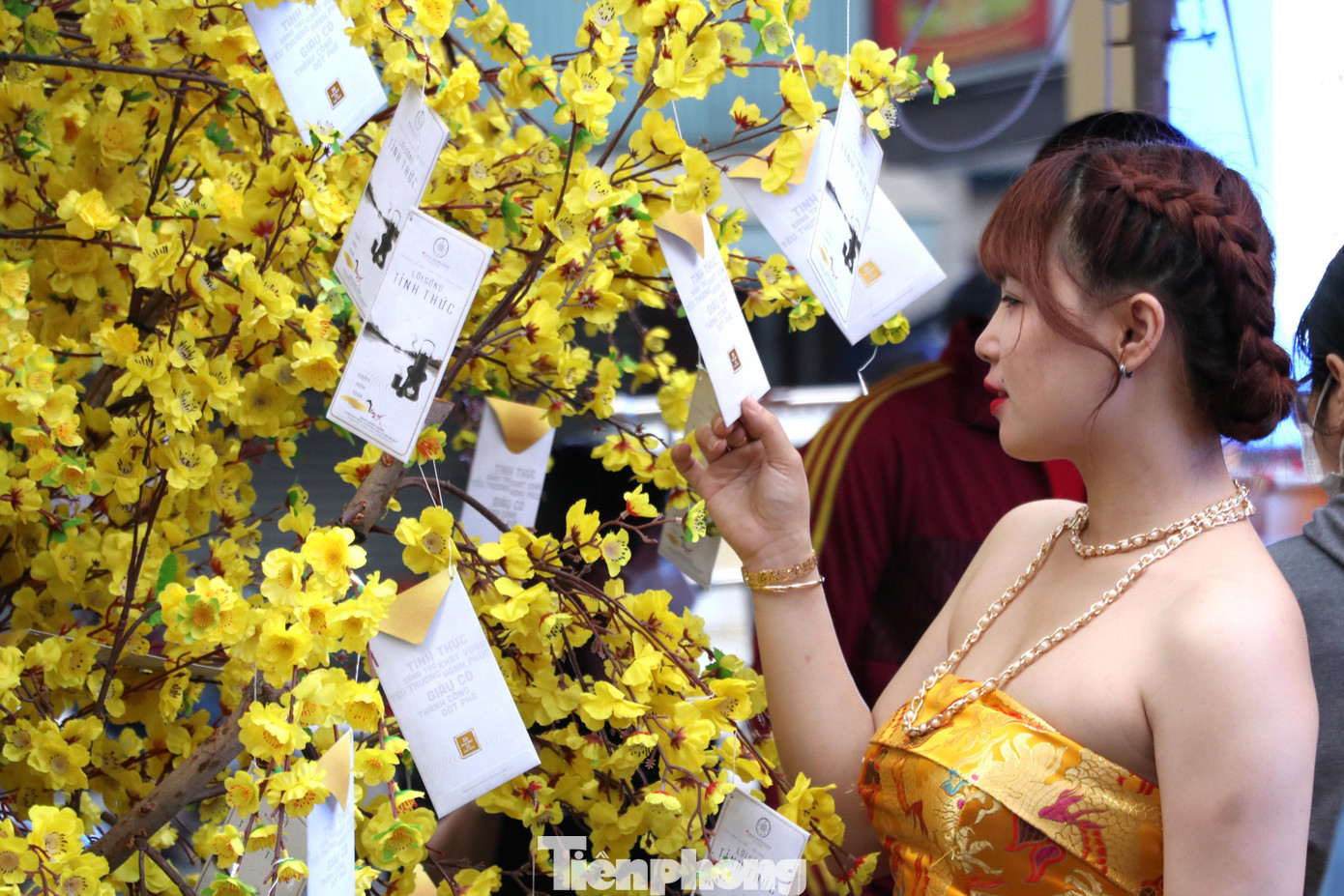 | Phố ông đồ năm nay với đường mai vàng cũng là điểm thu hút giới trẻ đến tham quan, chụp hình lưu niệm. |