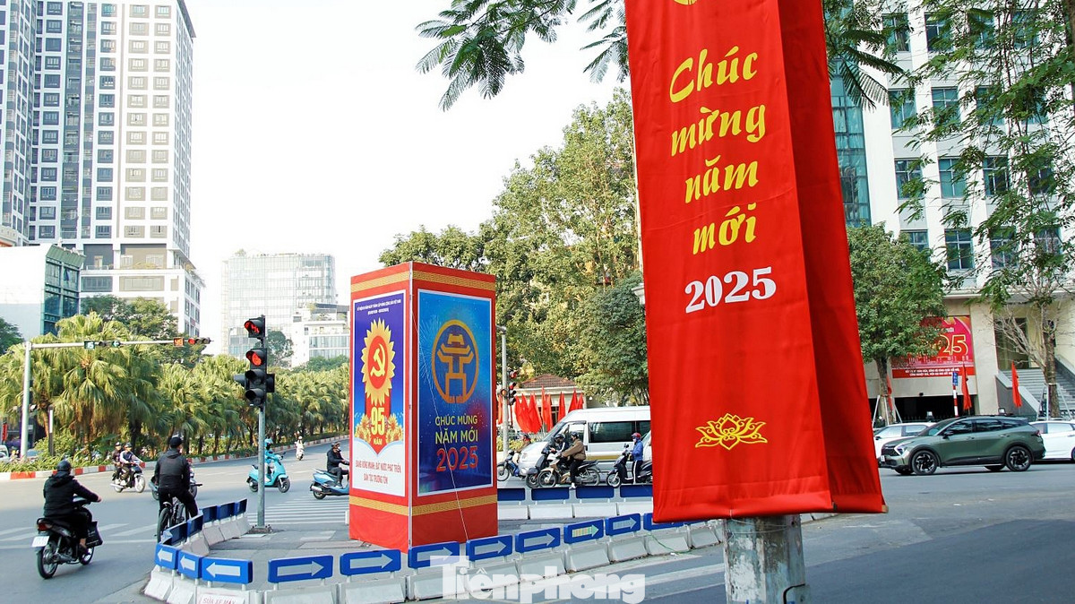 | Nhiều tuyến phố tại Hà Nội rực rỡ cờ hoa, biểu ngữ chào đón năm mới Ất Tỵ 2025. |