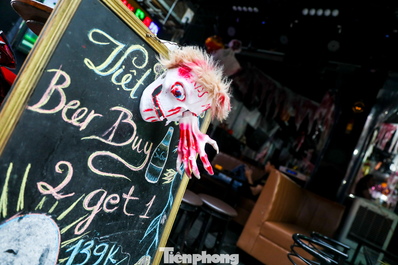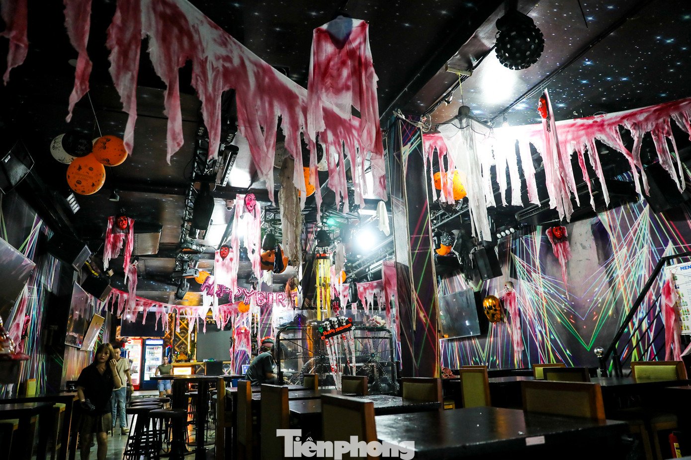 | Các nhà hàng, quán bar tại phố Tây Bùi Viện tràn ngập hình ảnh "ma quỷ" tạo cảm giác kích thích cho du khách đến vui chơi trước ngày Halloween diễn ra. |