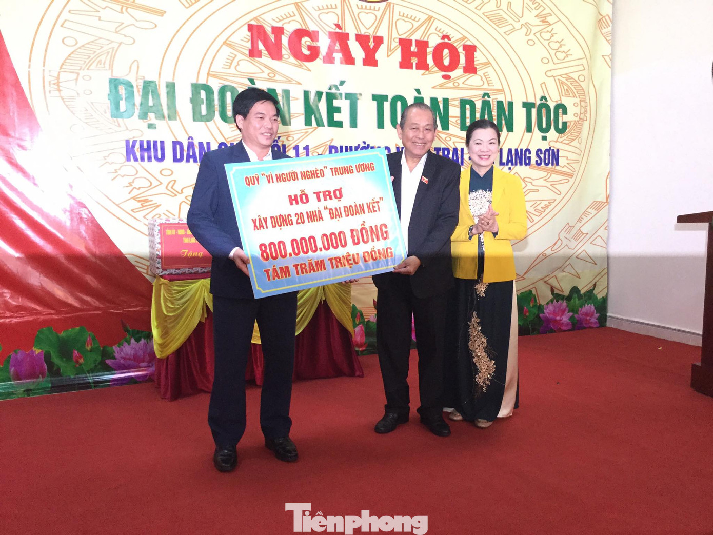 Phó thủ tướng thường trực (TT) chính phủ Trương Hòa Bình vui mừng, ghi nhận trước những thành tích đã đạt được của khối 11, thành phố Lạng Sơn trong việc xây dựng khu phố văn minh, sạch đẹp, gia đình yên vui, hạnh phúc.