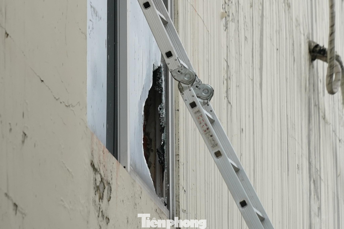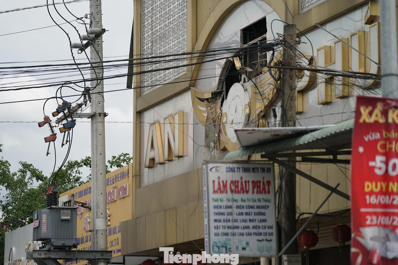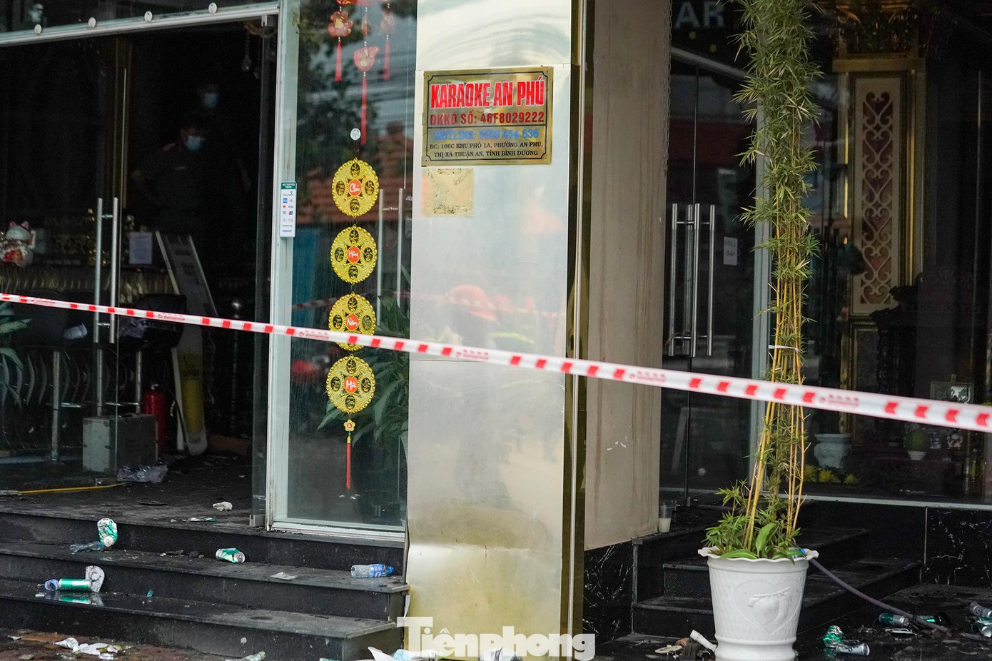 | Hiện trường tan hoang tại khu vực để xe của quán karaoke An Phú. |