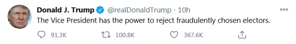 Trong mắt hầu hết mọi người, thì vai trò của Mike Pence trong cuộc họp của Quốc hội chỉ là đếm những lá phiếu được đưa cho ông. Nhưng Tổng thống Trump thì không nghĩ thế. Ông Trump tin rằng “phó tướng” của mình có quyền thích đếm phiếu nào thì đếm, phiếu nào không thích thì bỏ. Từ đó, chính ông Pence là chiếc chìa khóa cuối cùng sẽ giúp ông Trump lật ngược kết quả.