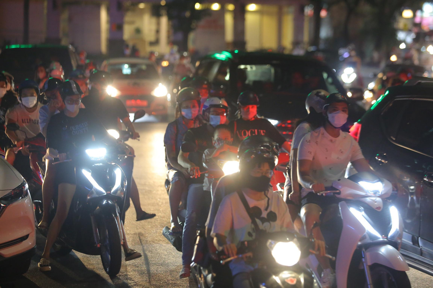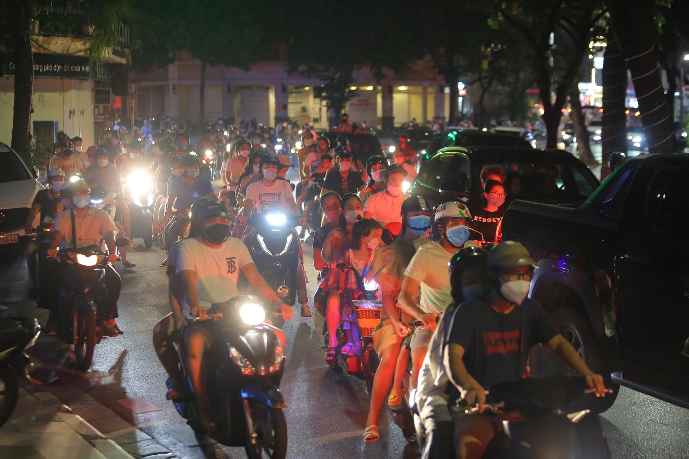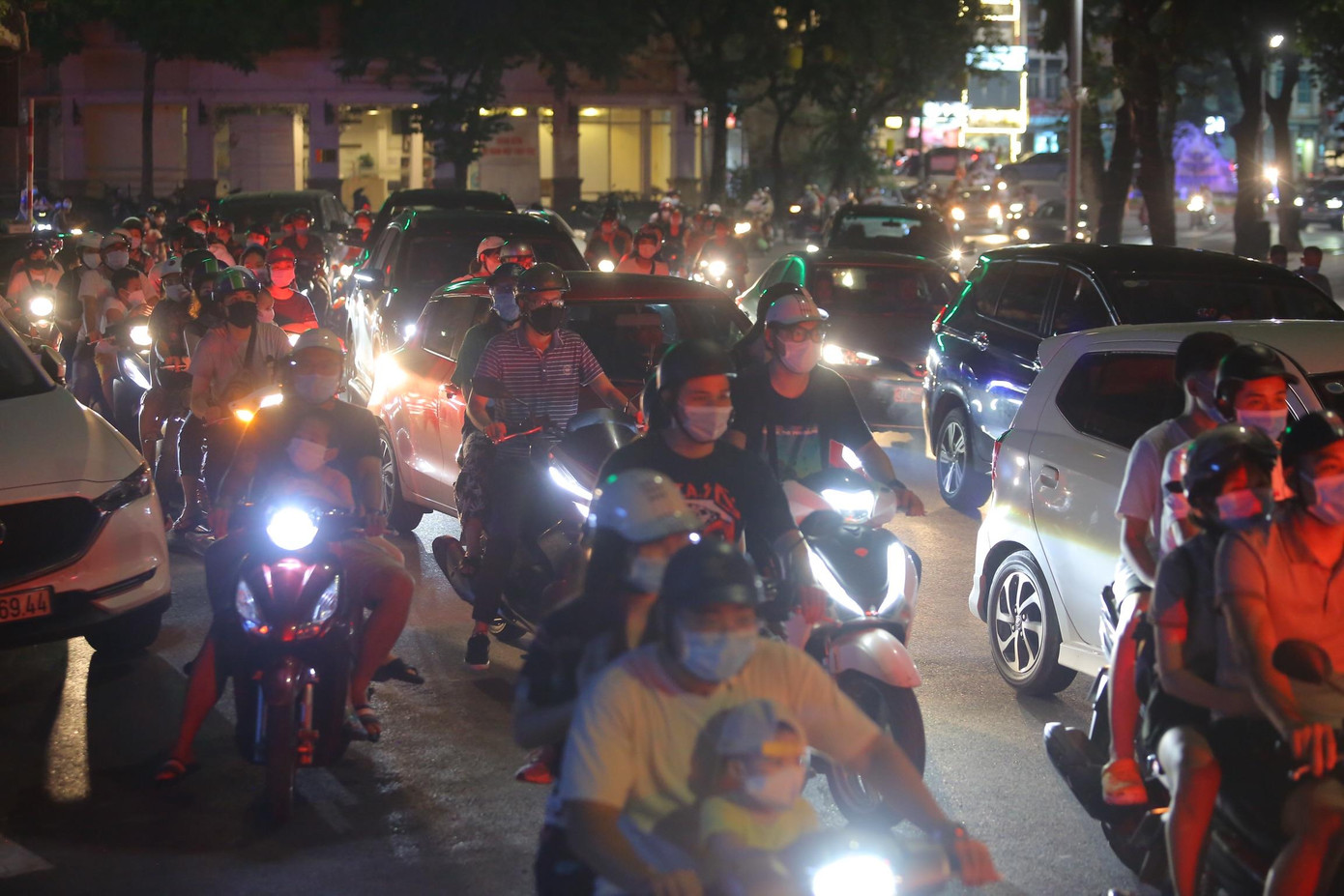 Mặc dù thành phố khuyến cáo người dân không ra đường khi không cần thiết, nhưng tình trạng tập trung đông người vẫn xảy ra ở các phố xung quanh hồ Hoàn Kiếm và các tuyến phố trung tâm Thủ đô vào tối nay.