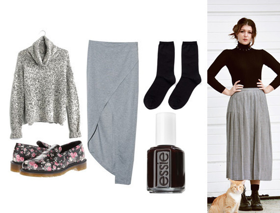Muốn đi theo phong cách "back to school", bạn có thể thực hiện set đồ gồm: áo cổ lọ, áo khoác da, chân váy xếp ly, tất cổ ngắn hoặc cao đến gối, giày loafer hoặc oxford.