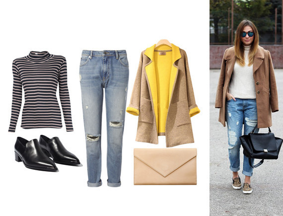 Cuối cùng, cách mặc đơn giản, hiệu quả và không bao giờ lỗi mốt là phối cùng áo khoác dáng dài, quần jeans bó sát hoặc chân váy. Năm nay, quần jeans rách hay chắp vá đang lên ngôi nên bạn hãy ưu tiên lựa chọn món đồ này, đi kèm giày lười hoặc sneakers là hoàn hảo.