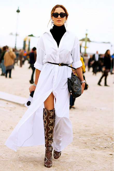 Táo bạo hơn, chị em hãy kết hợp áo cổ lọ và sơ mi dáng dài hoặc dạng shirt dress, đi cùng boots cao cổ, tạo nên phong cách vô cùng cá tính và phóng khoáng.
