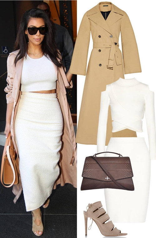 Gam camel luôn là một trong những tông chủ đạo mùa thu đông. Ngôi sao truyền hình Kim Kardashian cũng không thể bỏ qua xu hướng hấp dẫn này. Cô mix cùng gam trắng một cách hài hòa, ăn ý.