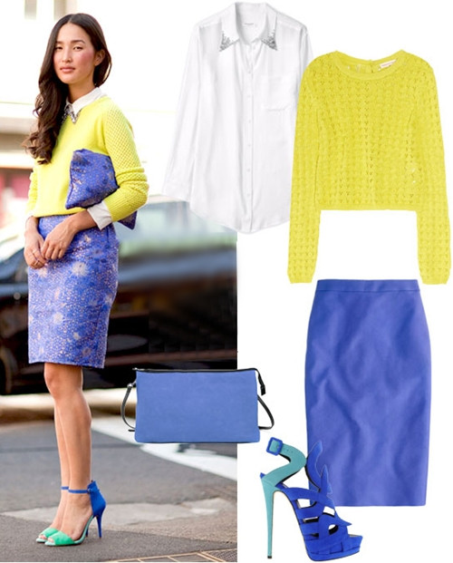 Blogger gốc Á Nicole Warne có ý tưởng phối màu tuyệt vời trong mùa thu đông khi pha trộn sắc vàng, cobalt và xanh ngọc một cách khéo léo.