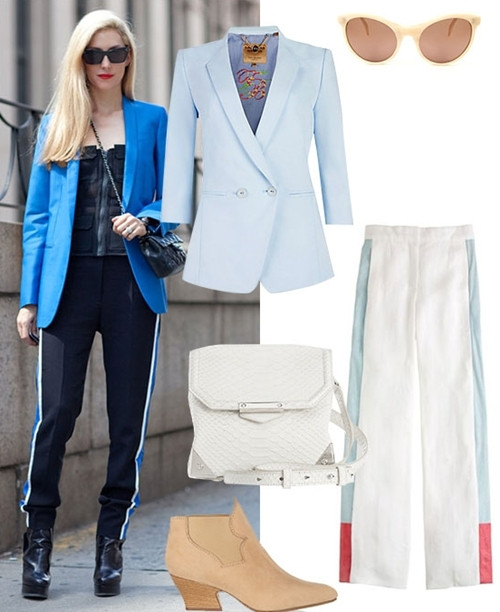 Fashionista Joanna Hillman diện blazer xanh và quần thể thao một cách sáng tạo, năng động trong ngày thu New York.