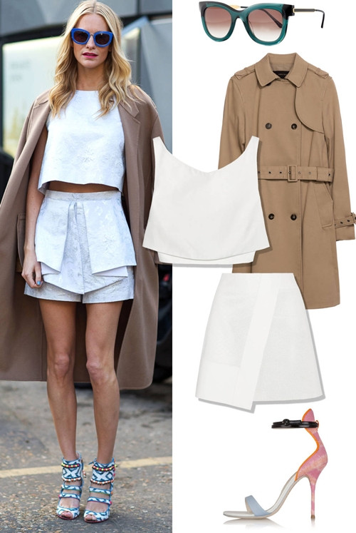 Người mẫu Anh Poppy Delevingne cũng có cách kết hợp tương đồng nhưng nhấn nhá với sandal cao gót màu mè.