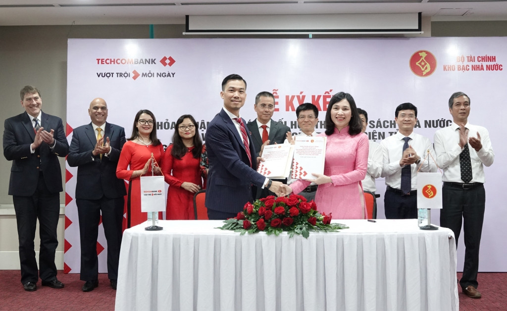 Lãnh đạo KBNN và Techcombank thực hiện ký kết thoả thuận hợp tác song phương