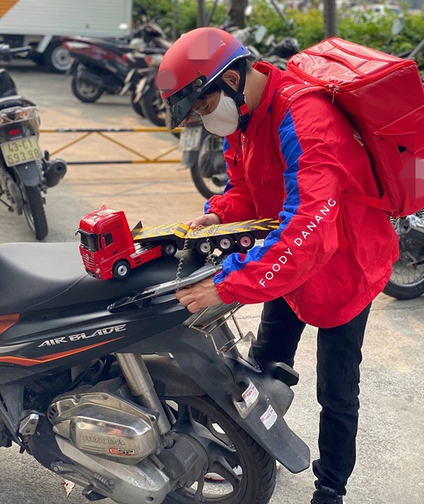 Mới đây, loạt hình ảnh về chàng shipper cẩn thận giao đồ bằng xe đồ chơi được đăng tải lên một trang mạng xã hội đã nhanh chóng thu hút hàng nghìn lượt tương tác.