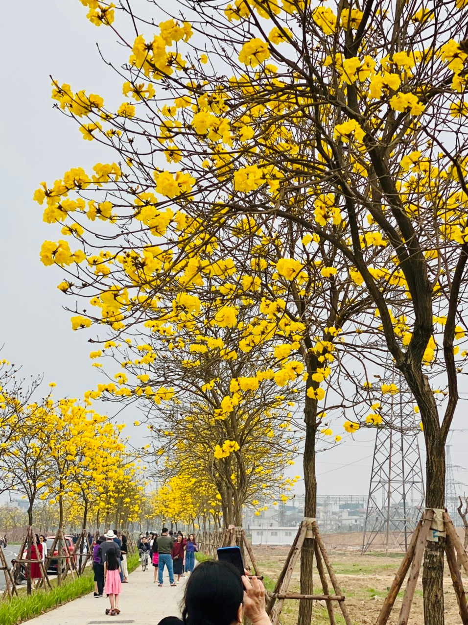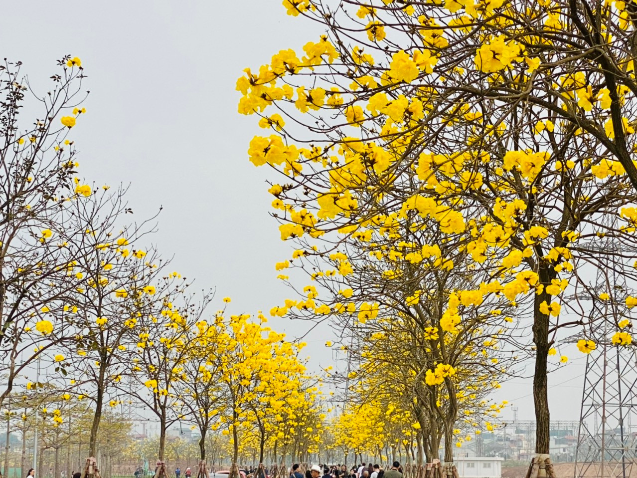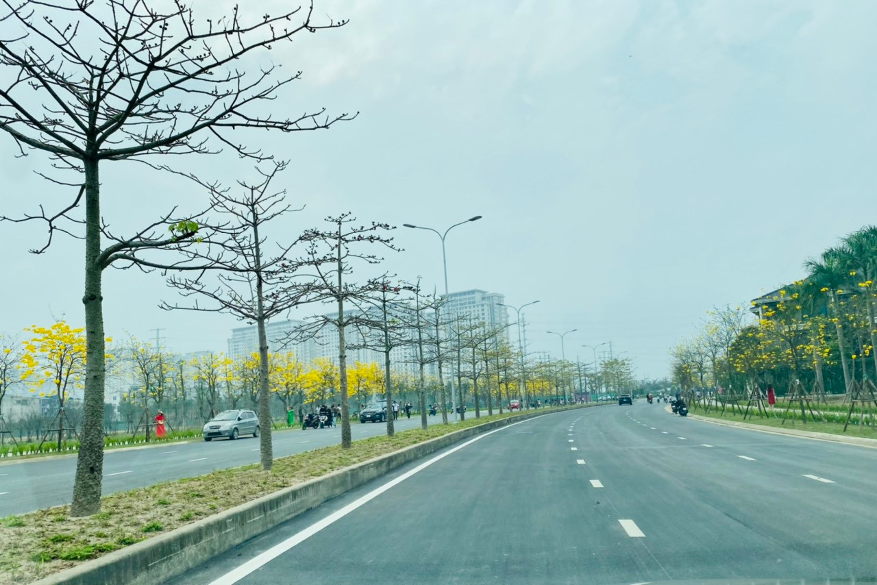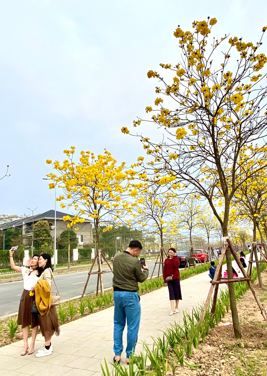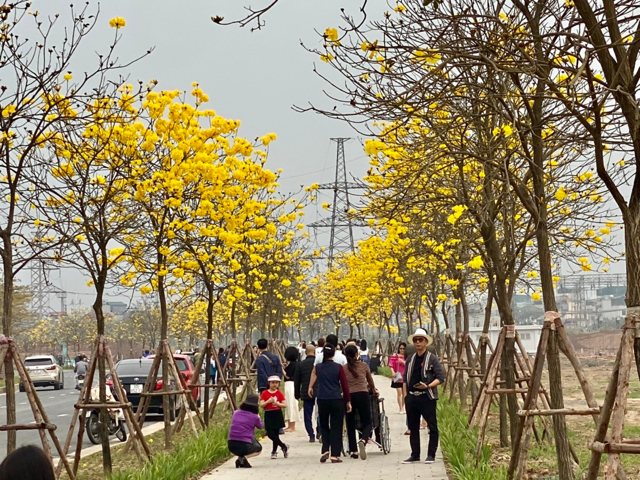 TPO - Hoa phong linh đang nở vàng rực một đoạn đường trong khu đô thị Park City Hanoi ở phường La Khê, quận Hà Đông, thu hút rất nhiều người đến chiêm ngưỡng và chụp ảnh.