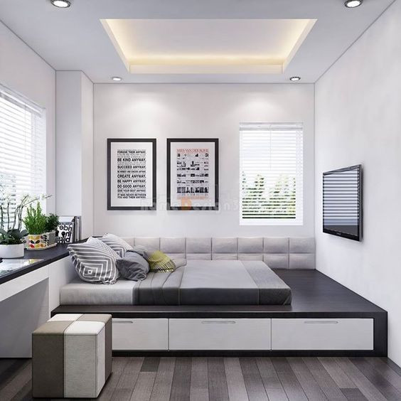phồng ngủ hiện đại kết hợp đọc sách.