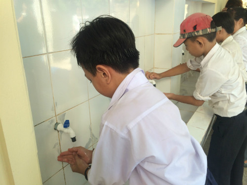 - Trong trường học: Bố trí đủ bồn rửa tay có vòi nước và xà phòng ở những vị trí thuận lợi cho học sinh rửa tay. Hướng dẫn học sinh rửa tay đúng cách, thường xuyên với nước và xà phòng trước khi ăn, sau khi đi vệ sinh. Sử dụng nhà tiêu hợp vệ sinh. Phân, chất thải của trẻ phải được thu gom, xử lý và đổ vào nhà tiêu.