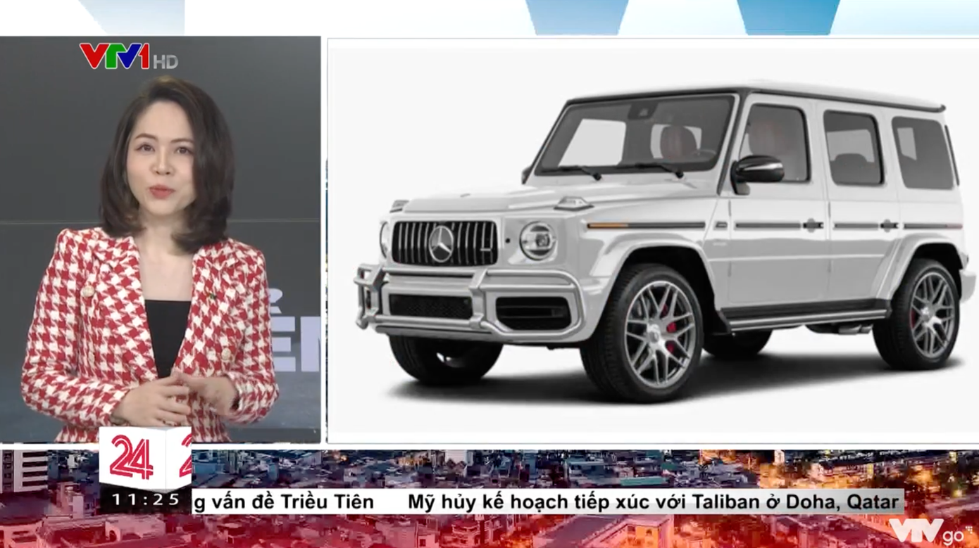 Đáng chú ý, nữ MC còn đưa hẳn một ví dụ về việc "một ai đó" được tặng siêu xe đắt đỏ, không quên kèm theo hình ảnh minh hoạ là chiếc xế hộp "thị phi" Mercedes AMG-G63. Tuy nhiên, nữ BTV đã "bẻ lái" sang một ví dụ khác, câu chuyện về người vợ ở Malaysia tặng cho chồng chiếc Lambogini trước khi vào giai đoạn ở cữ.