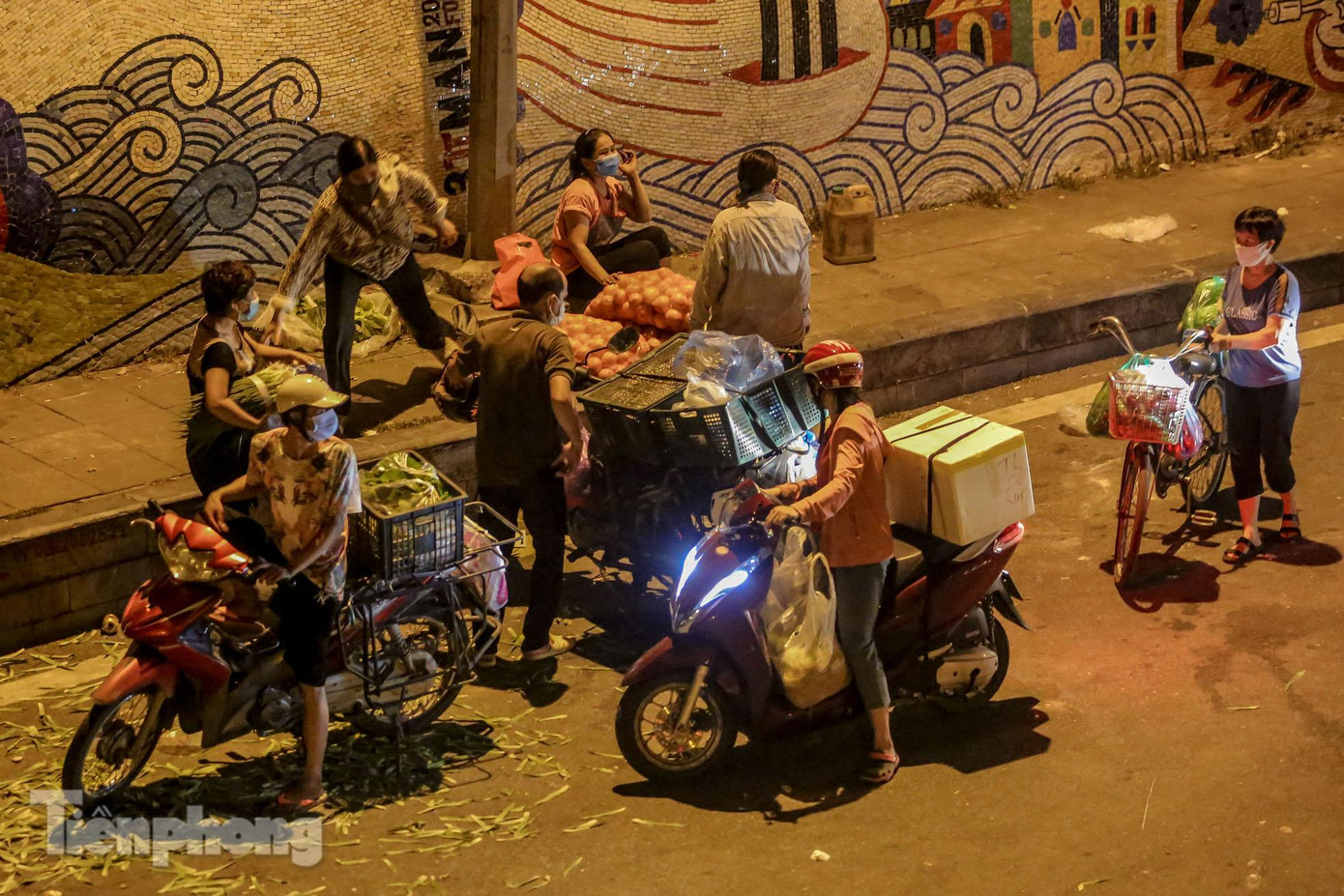 TPO - Sau khi quận Ba Đình tiến hành phong toả chợ Long Biên từ trưa 3/8 để phòng chống dịch COVID-19, các tiểu thương vẫn duy trì trao đổi hàng hóa ngay tại lòng đường, vỉa hè phía bên ngoài chợ suốt cả đêm bất chấp quy định giãn cách.