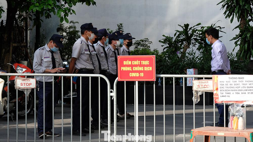 Tòa nhà 97-99 Láng Hạ (phường Láng Hạ, quận Đống Đa) bị tạm thời phong tỏa ngay sau khi có thông tin nhân viên làm việc tại đây dương tính với SARS-CoV-2.