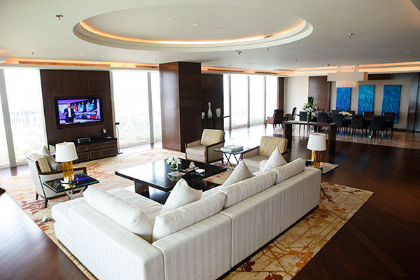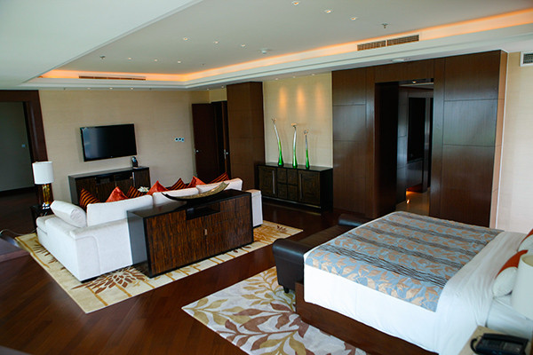 Căn phòng Presidential Suite (phòng tổng thống) có tổng diện tích lên tới 320 m2. Bên trong có 8 phòng riêng biệt khác nhau, 3 tivi lớn 47 inch cùng hệ thống âm thanh hiện đại.