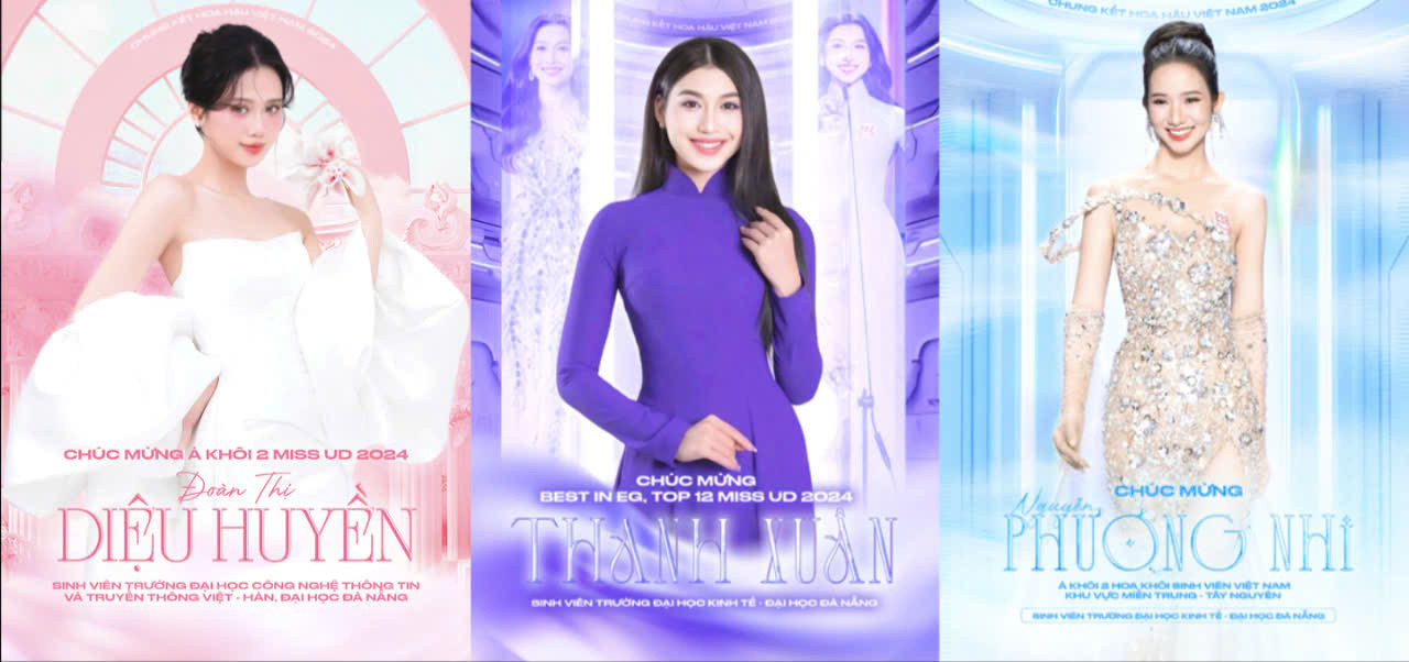 Chị Nguyễn Thị Kim Ánh: Trước thềm chung kết Hoa hậu Việt Nam 2024, chị muốn gửi đến Diệu Huyền, Phương Nhi và Thanh Xuân thật nhiều tình cảm và niềm tin. Các em đã đi một chặng đường rất dài, nỗ lực không ngừng để có mặt trong Top 25 thí sinh xuất sắc nhất. Đừng lo lắng về kết quả, vì chỉ cần sống trọn vẹn từng khoảnh khắc trên sân khấu, các em đã là những người chiến thắng trong hành trình trưởng thành của chính mình. Chị tin rằng, hình ảnh ba cô gái trẻ đến từ Đại học Đà Nẵng sẽ là niềm cảm hứng rất lớn cho nhiều sinh viên khác. Cứ tự tin, cứ xinh đẹp và cứ thật là mình - đó chính là điều tuyệt vời nhất.