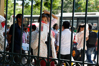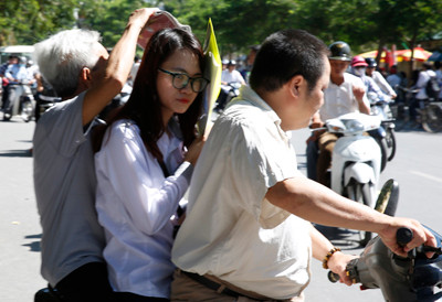Người nhà thí sinh đợi ngoài trường thi dưới nắng nóng gần 40 độ C